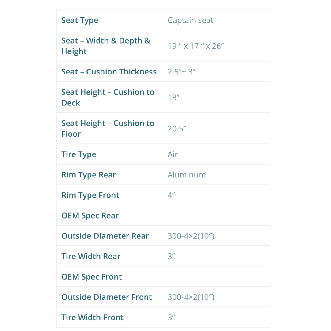 - Extra Large Captain's Seat: 19"w x 17"d x 26"h