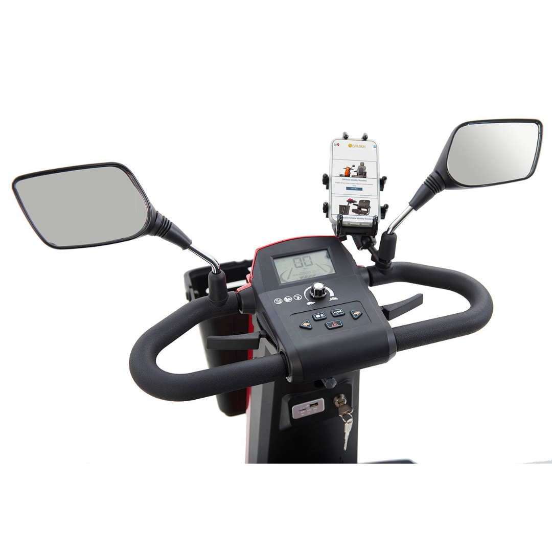 If you’re looking for the ultimate outdoor driving experience, look no further than the new Golden Eagle™. In a class all its own, the Eagle’s stylish yet rugged, off-road design is built for high performance and maneuverability with front and rear suspension for smoothly traversing outdoor terrain and a powerful 140 Amp controller for outstanding climbing ability. It offers a full LED lighting package, an adjustable tiller and a luxury high-back Captain’s seat for maximum comfort when on the go, plus durable vibrant red color shrouds for a sporty look. With a 500 lb. weight capacity, 13” pneumatic tires, up to 32-mile operating range on optional 75 AH batteries, plus a water-resistant storage compartment that comes standard, the Golden Eagle offers everything you need to enjoy the great outdoors!