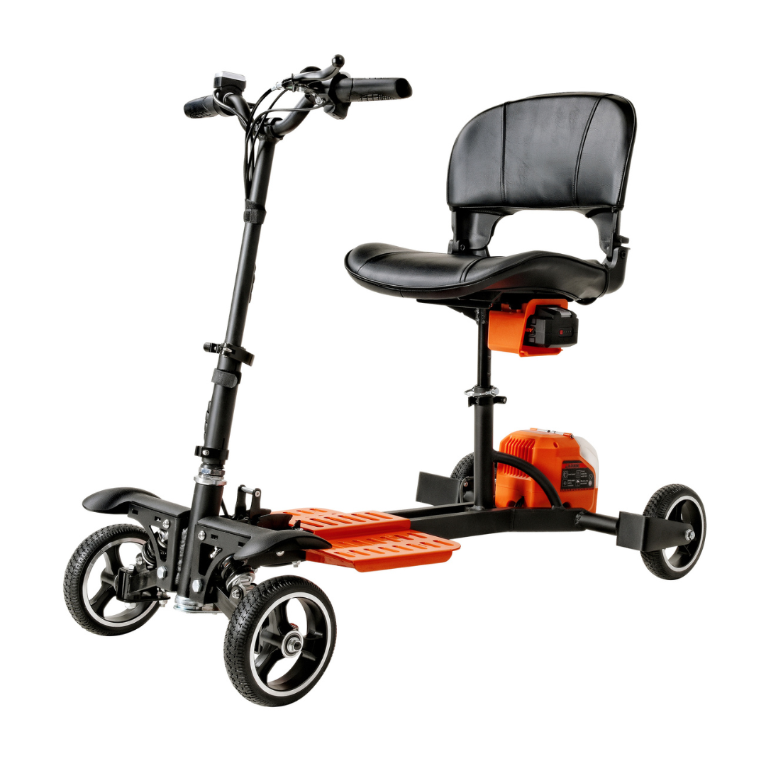 Set out on a journey of independence and style with the SuperHandy 4-Wheel Mobility Scooter. Lightweight yet sturdy, this foldable scooter is built for all of life’s adventures. Available in bold Orange & Black or understated Dark Green & Sand, it combines exceptional maneuverability with sleek design. Effortlessly navigate your daily outings with a scooter that’s as dependable as it is stylish.