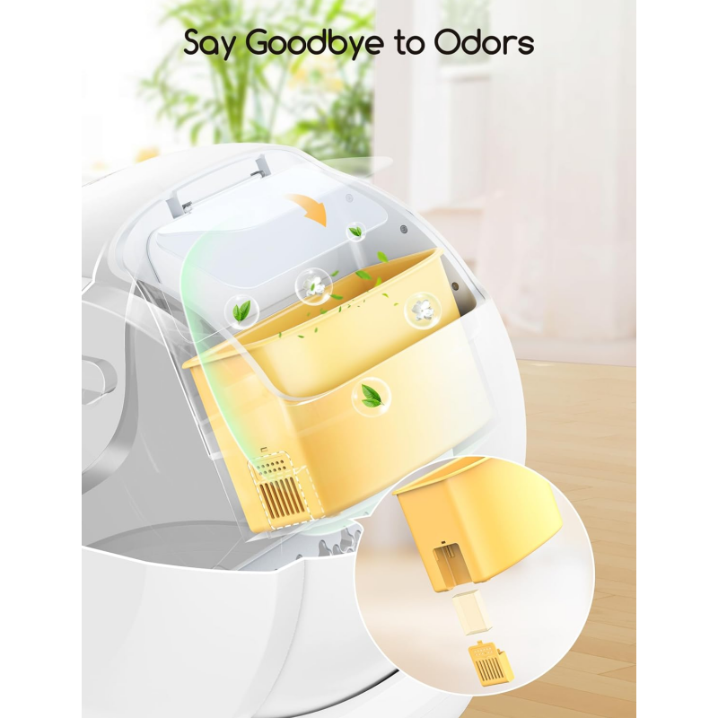 - Odor Control & Whisper-quiet: Meowant automatic litter box odor-proof cover physically isolation odors in its tracks and scented gel keep litter box a fresh toilet environment. Built-in ultra-quiet motor with noise as low as 38dB, providing a peaceful environment for you or your family