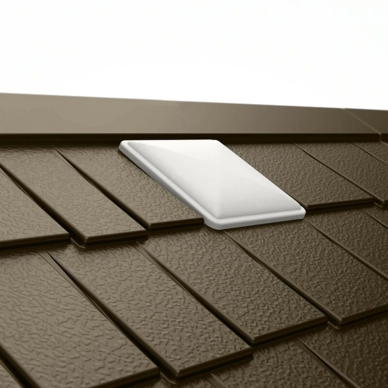 - Classic shed design with architectural details and metal-reinforced shingle-style roof panels