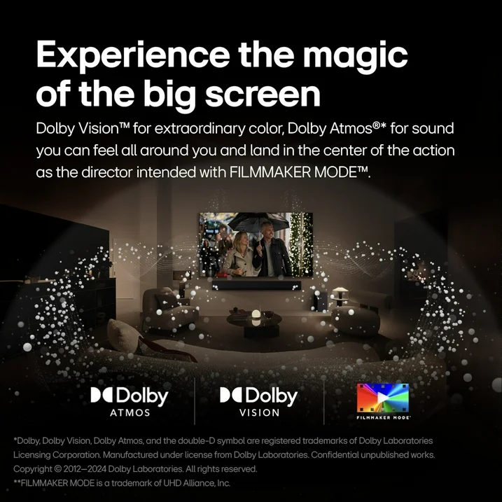 - Enjoy movie magic from home with Dolby Vision™, Dolby Atmos®³ & FILMMAKER MODE™