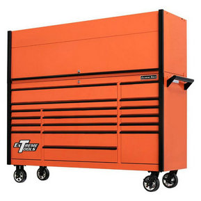 Extreme Tools 72" DX Series 17-Drawer Roller Cabinet - Orange w/Black Drawer Pulls (DX722117RCORBK)