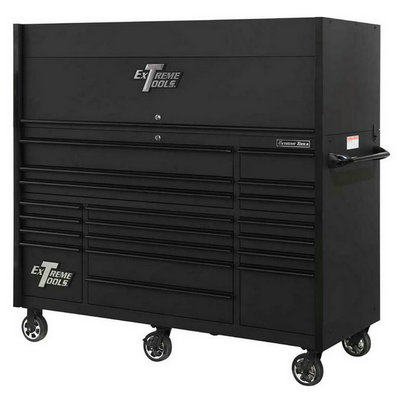 Extreme Tools 72" RX Series 19-Drawer 30" Deep Roller Cabinet - Matte Black w/Black Drawer Pulls (RX723019RCMBBK-250)
