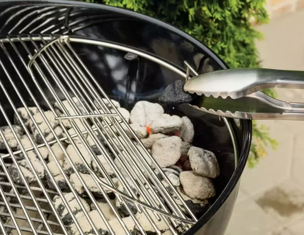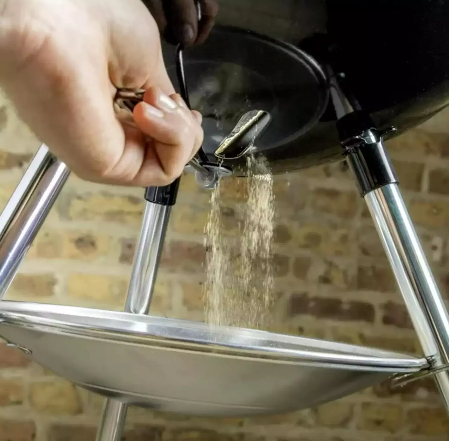 The One-Touch cleaning system provides hassle-free cleanup of charcoal ash and debris by swiping it into the rust-resistant ash catcher.
