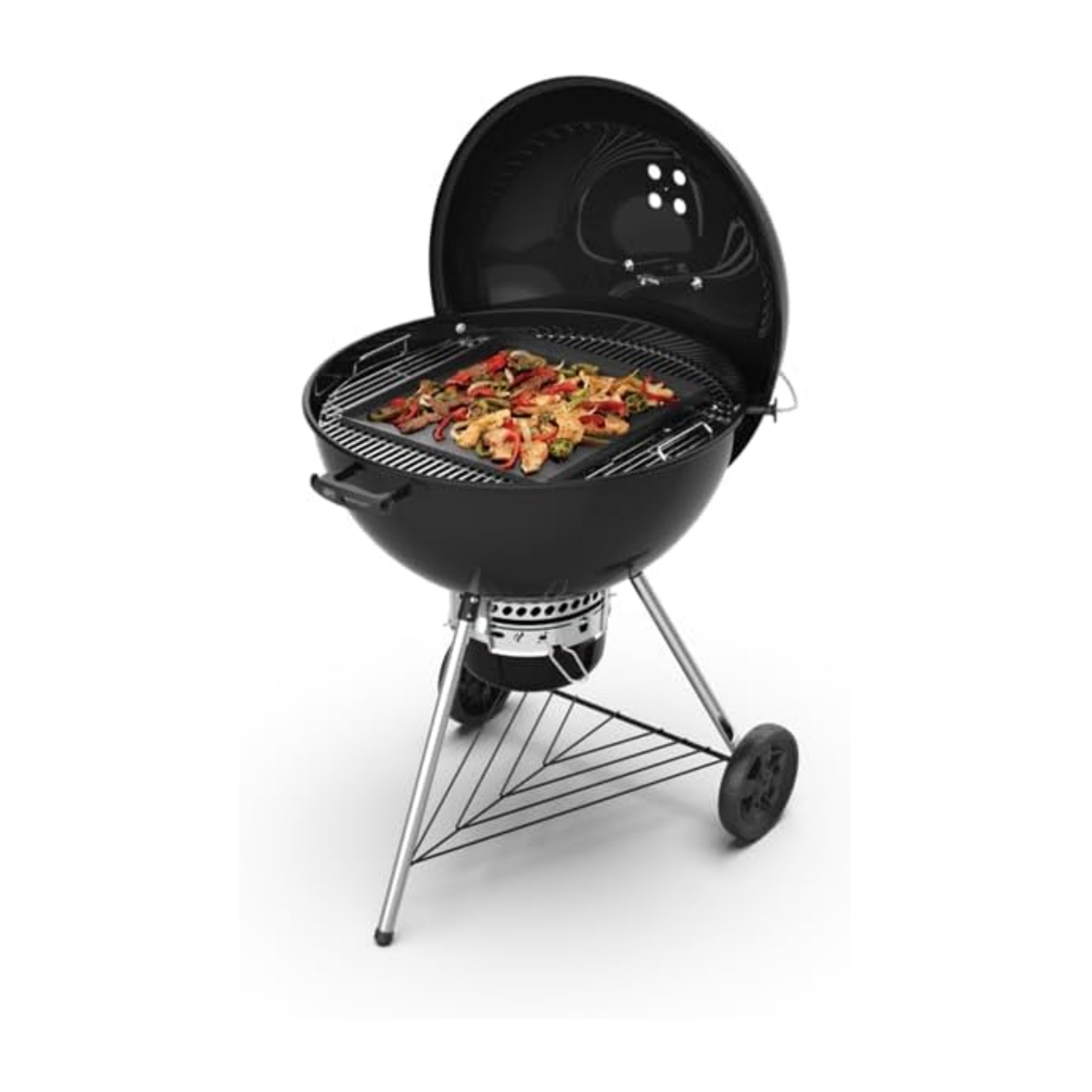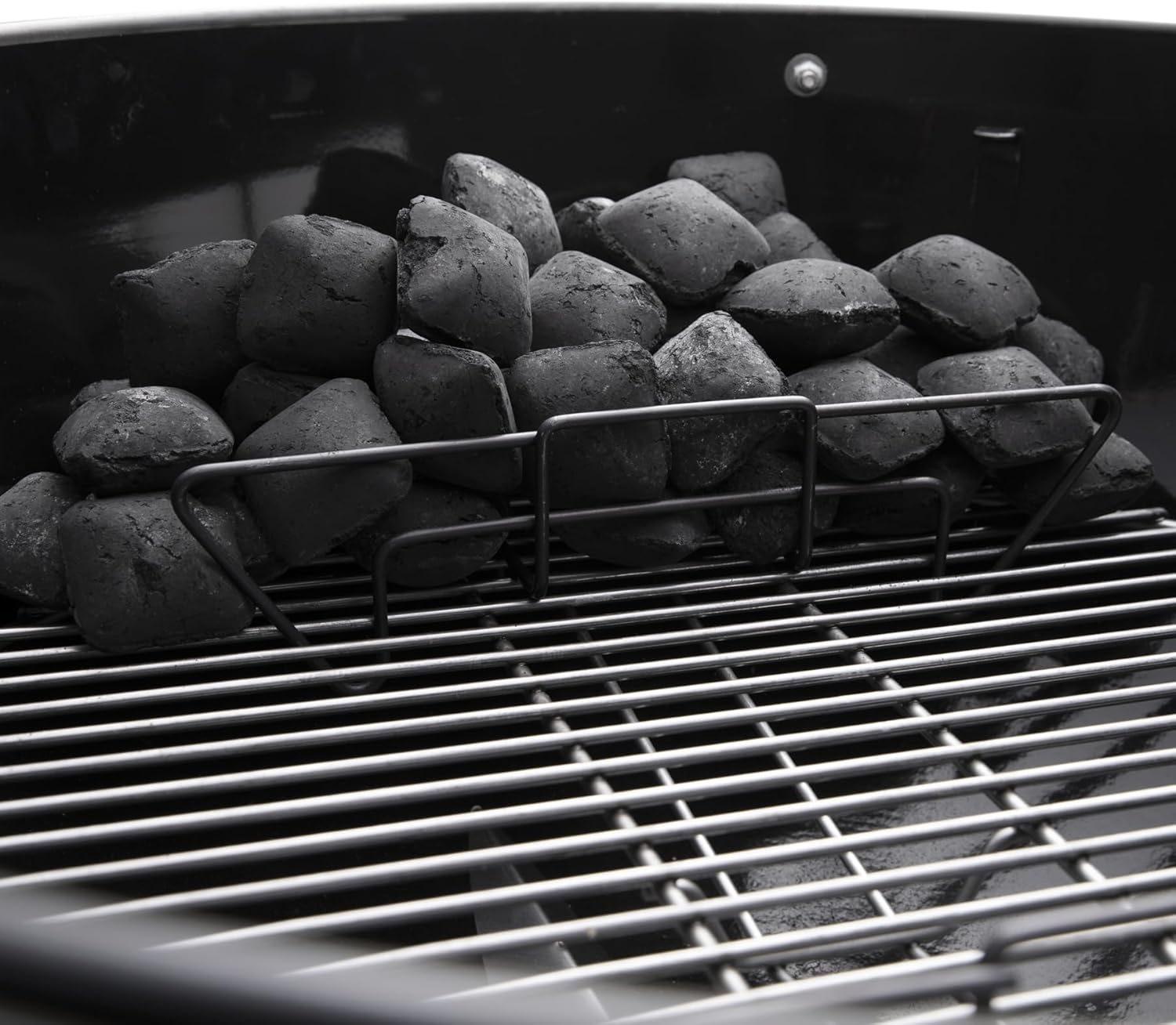 - Stainless-steel hinged cooking grate with flip-up sides makes it easy to add more charcoal while cooking without removing the entire grate.