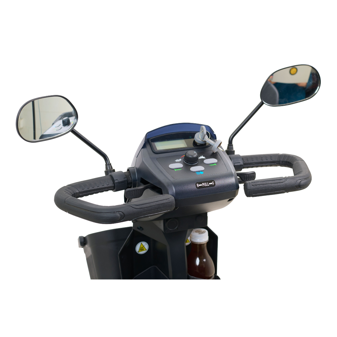 Introducing the revamped Companion 4-wheel scooter from Golden, showcasing a dynamic new appearance and enhanced comfort features! This cutting-edge model boasts a meticulously designed, wider infinitely adjustable tiller, complete with a digital dashboard featuring a percentage battery life indicator and water-resistant buttons on the control panel. Two convenient cup holders add to its user-friendly design. With the most spacious leg and foot room in its class, coupled with a contemporary rugged design and full front and rear suspension, it ensures a smooth ride.