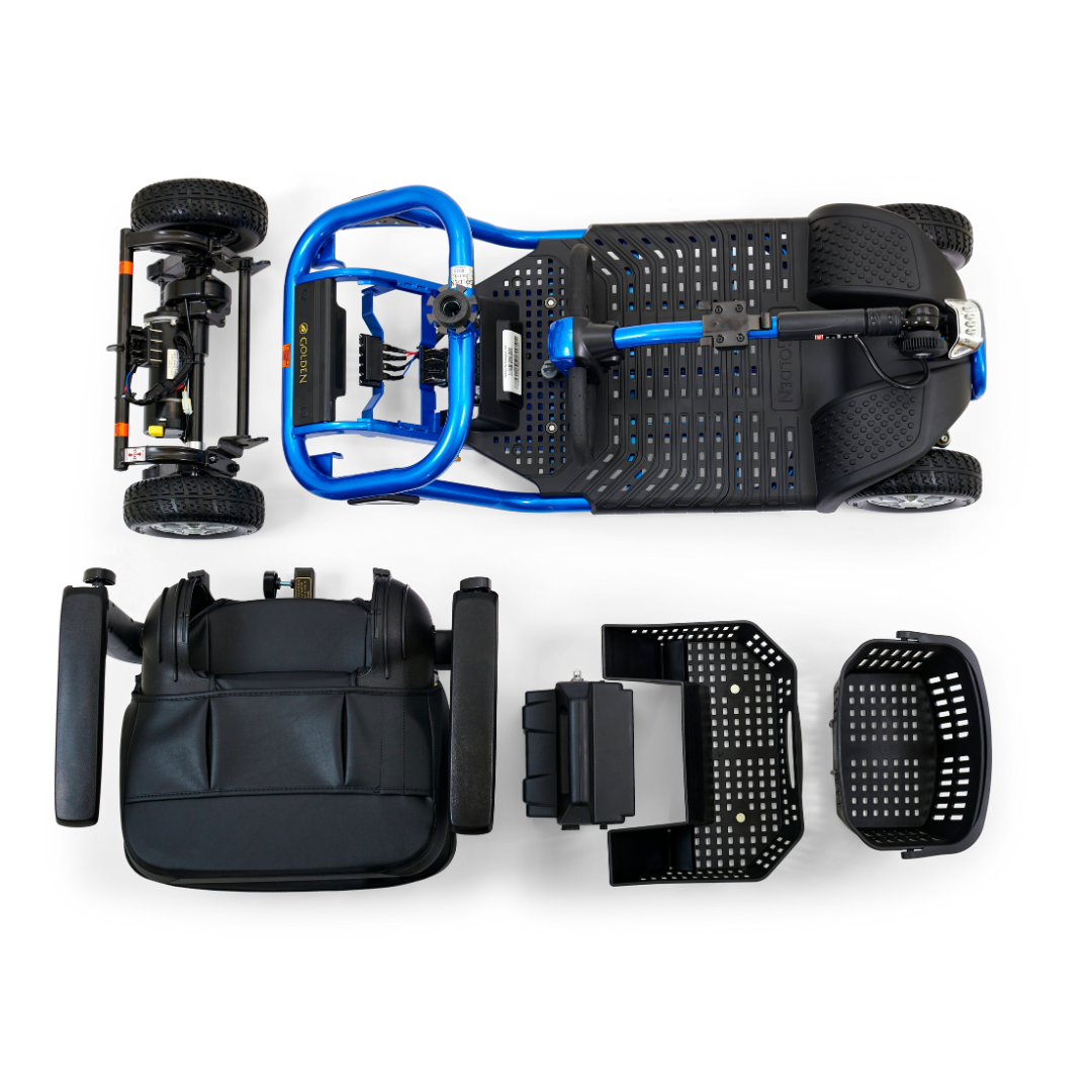 The LiteRider disassembles into six pieces with the heaviest piece weighing 52 lbs and it has wireless disassembly which makes it even easier to put back together.