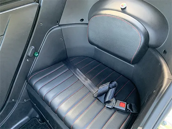 Experience the mobility of the future now and reach even greater capabilities with the E-Runner four-wheeled mobility scooter, a stylish electric vehicle with a fully enclosed cab and a fully renovated interior like a city car. It has a more traditional automotive design than the Green Transporter Q Pod, but still maintains a compact size. It has a backup camera and a heater, conveniences that most scooters don't have. This model features swing-out doors and glass windows, making it ideal for riding in any weather. The adult scooter has a captain seat and a rear bench seat and is one of the best electric scooters. This two-seater electric scooter is perfect for seniors, working adults, and people with disabilities.