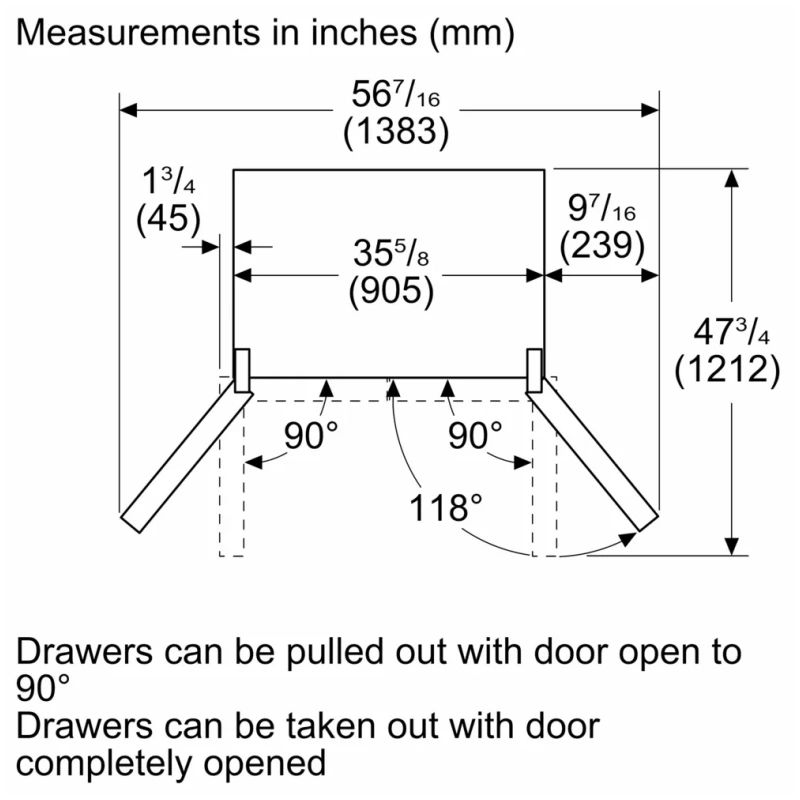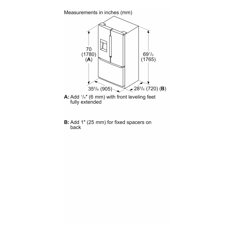 • Bosch 300 Series French Door Bottom Mount Refrigerator 36'' Stainless steel (with anti-fingerprint)