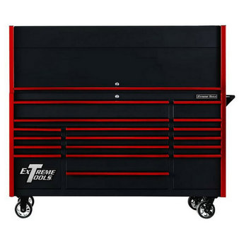 Extreme Tools 72" DX Series 17-Drawer Roller Cabinet - Black w/Red Drawer Pulls (DX722117RCBKRD)