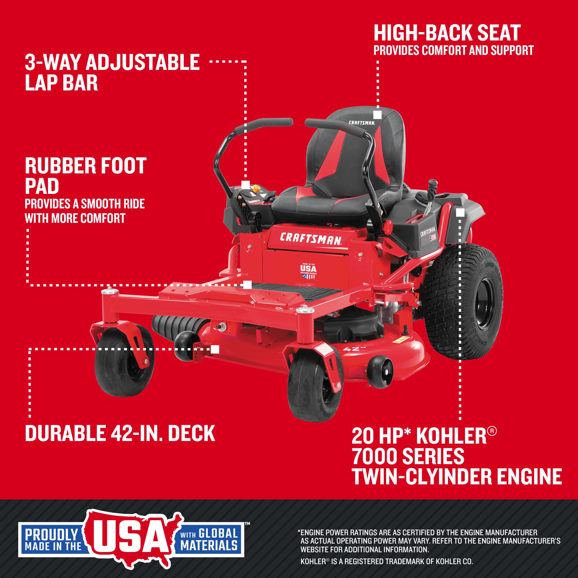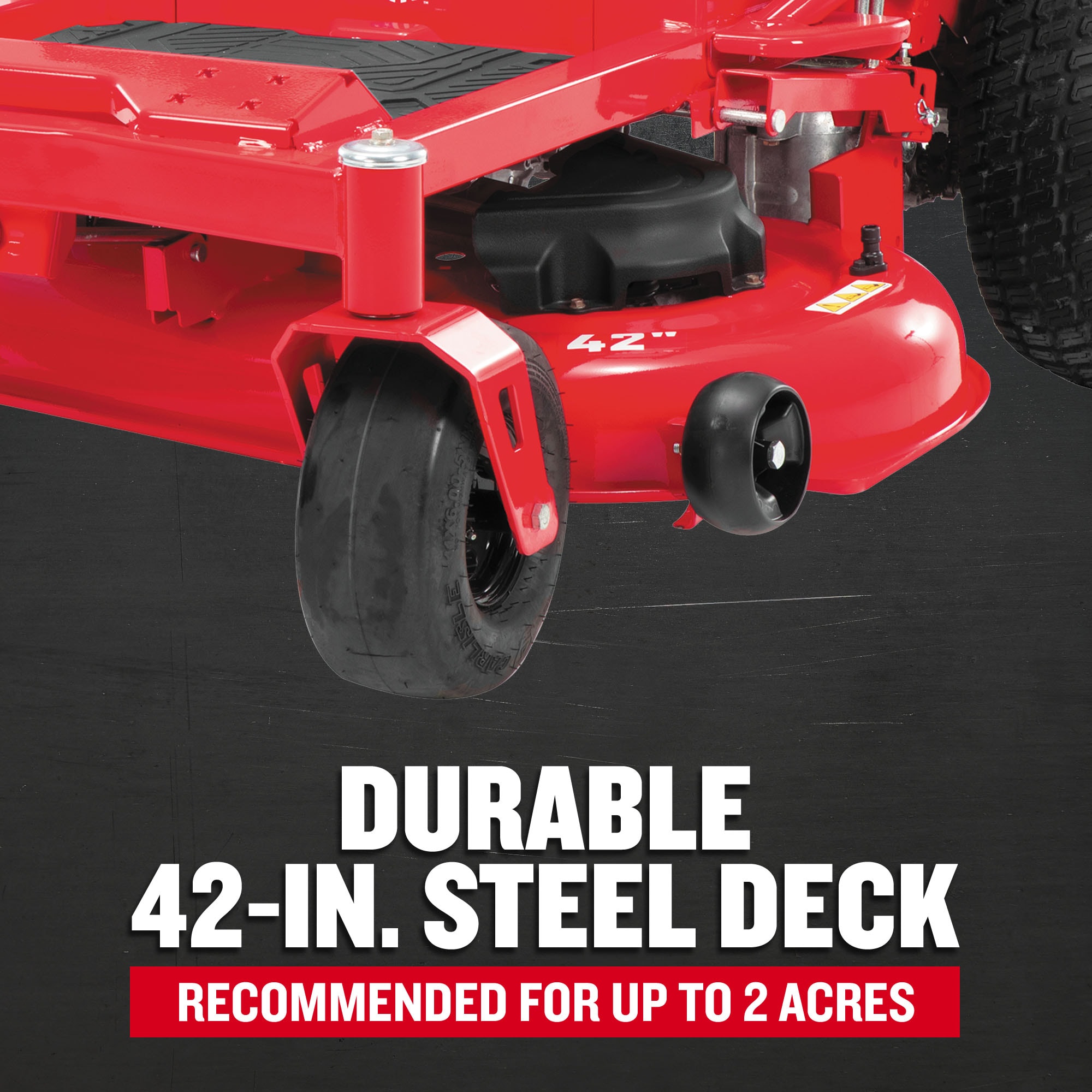 Durable: 42-in stamped steel deck holds up against tough obstacles
